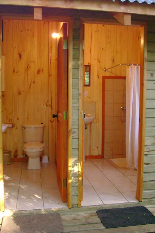 There are several well-shaded, private campsites with shared bathrooms,hot showers and a wash area. Each one is provided with a picnic table.