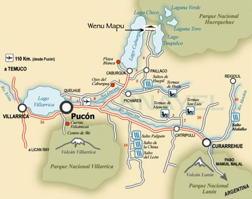 Wenu Mapu is located 3 kilometers before the entrance of Huerquehue National Park and 35 Kilometers from Pucon. Please contact us for detail directions of how to get here. We higly recomend 4x4 vehicle to come to Wenu Mapu.
